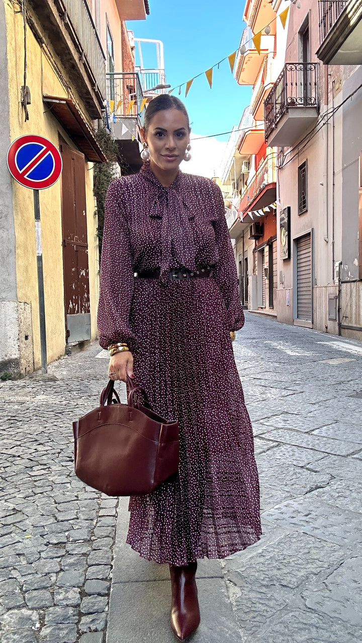 Abito tg unica con collo a pistagna e fusciacca per fare un Bell fiocco o lasciarlo così sciolti, elastico sottile in vita per renderlo comodo e adattarsi a tutte le tg,il gonnellone e plissettato manica leggermente a sbuffo con elastico sottile al polso