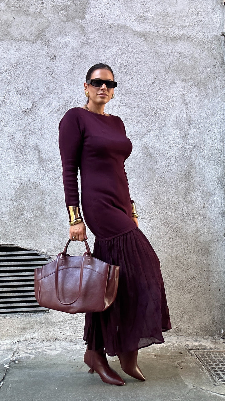 composto da due tessuto, questa la sua particolarità, sopra, a formare un abito, abbiamo un tessuto in lana pettinata a costine. Elastico. Sotto a formare la gonna c’è un tessuto trasparente malpensante, plissettato. Taglia unica che veste fino alla 46
