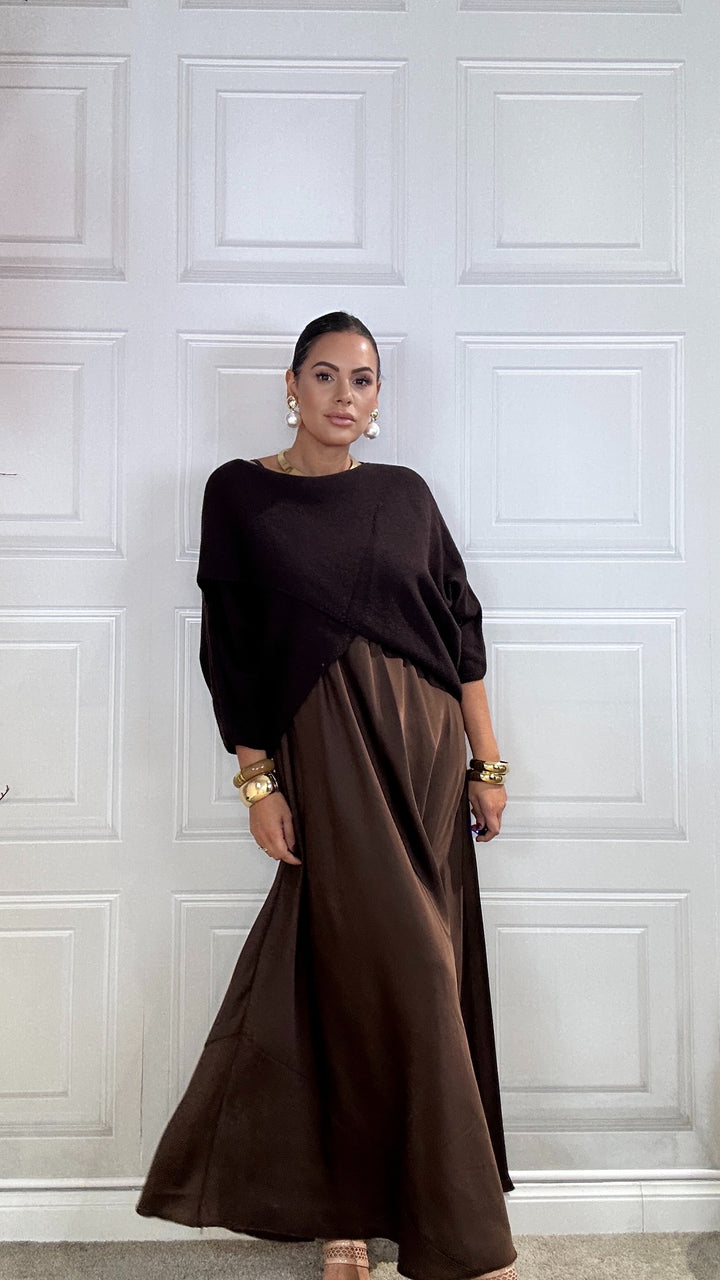 Abito composto da due pezzi l'abito in raso a bretelle nn regolabile che scende morbido e nn e a corpo e in più porta un coprispalle in viscosa con scollo tondo manica a tre quarti e chiusura ad incrocio ma senza bottoni e chiusure e cucito praticamente si inserisce solo il capo