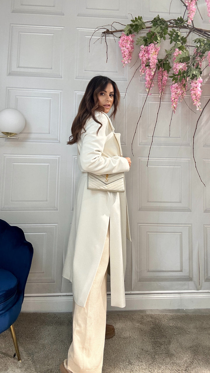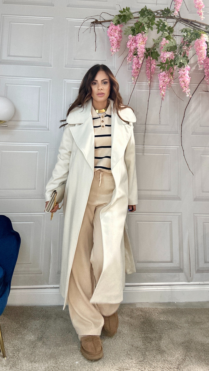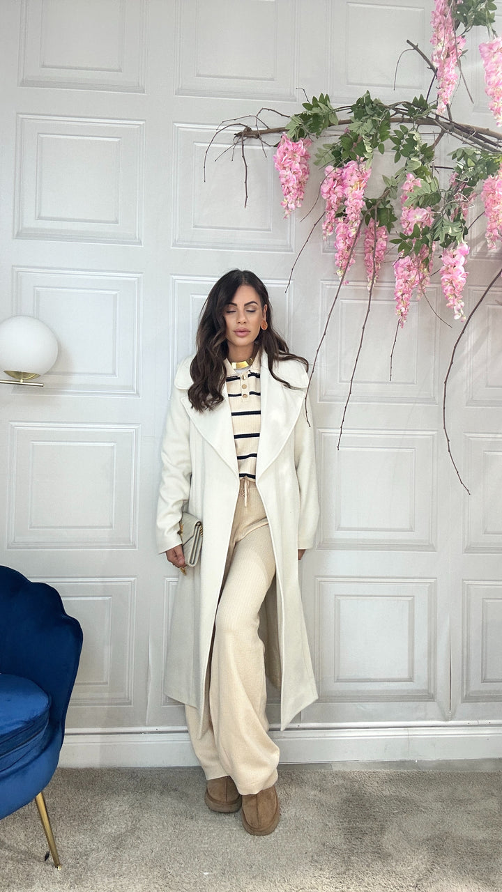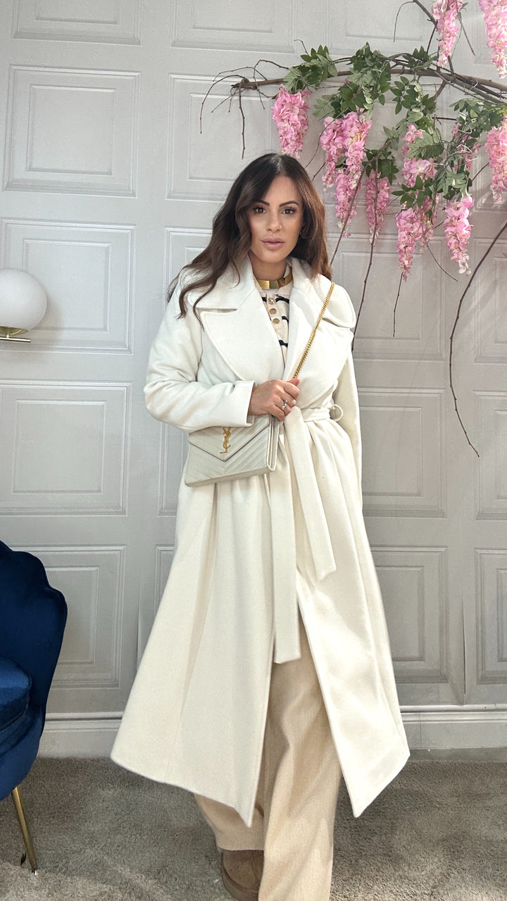 Cappotto lungo e scollo a giacca Chiusura a due bottoni in osso sfumato tasche vere sui fianchi sui polsini porta un cinturino con lo stesso bottone il tessuto e poliestere e viscosa porta la cintura dello stesso tessuto e colore