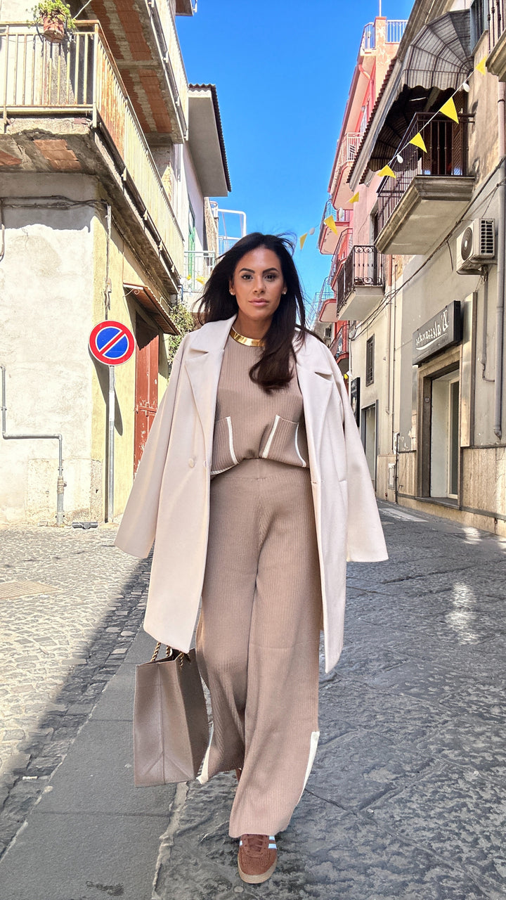 Cappotto corto Made in Italy, tessuto spigato con doppio bottone sul davanti, interno foderato. Vestibilita a uovo. la taglia più grande veste fino alla 48