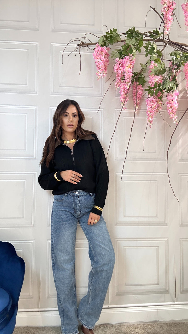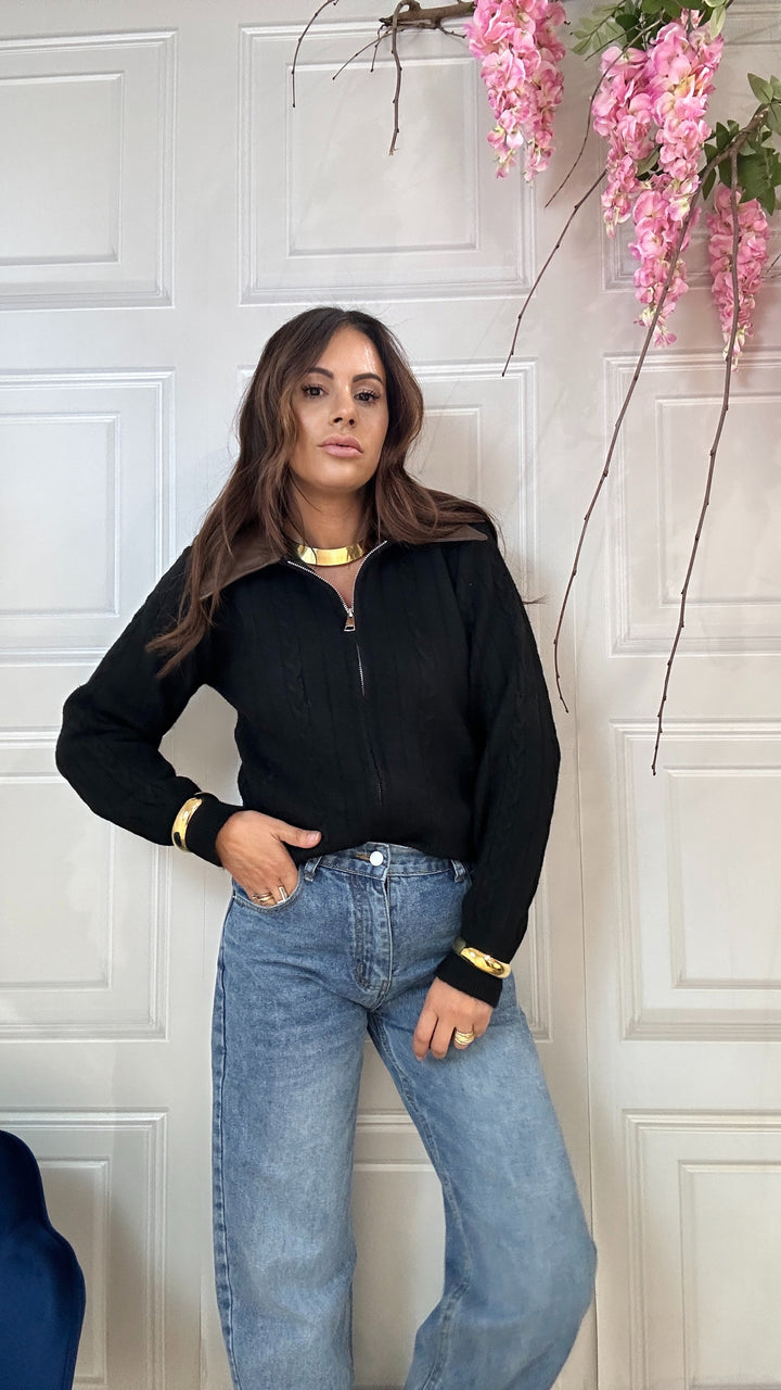 Cardigan in lana con trama intrecciata. Porta la cerniera sul davanti con il doppio cursore è il colletto in simil pelle. È una taglia unica che