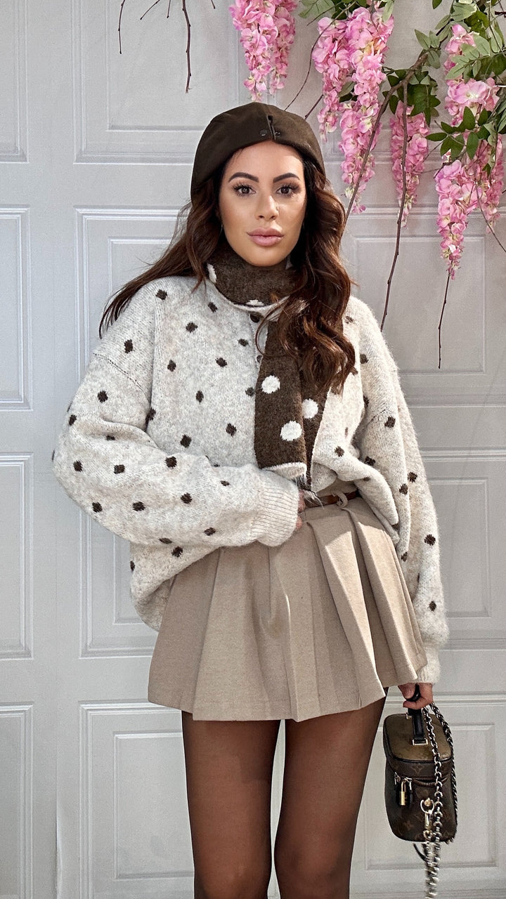 Cardigan con sciarpa inclusa. In lana con pois stampati. Taglia unica Vestibilita over