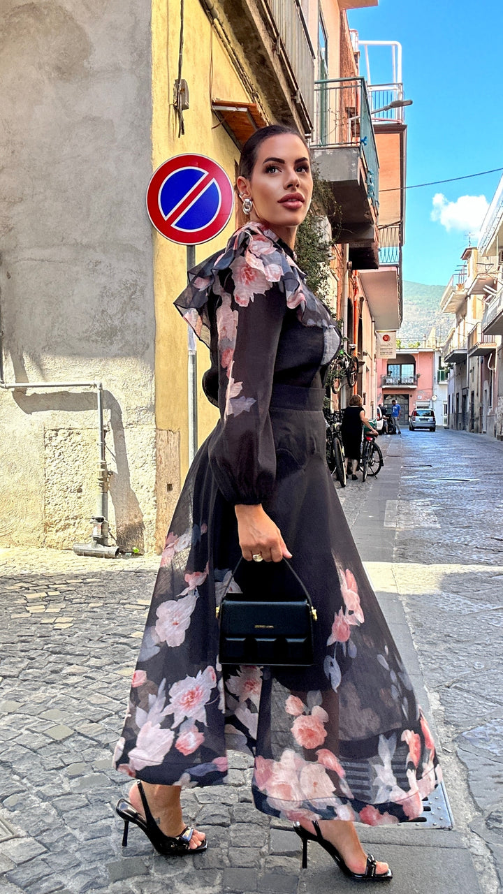 Coordinato elegantissimo composto da camicia avvitata che l’età delle maxi rouge sulle spalle e bottoni gioiellò.