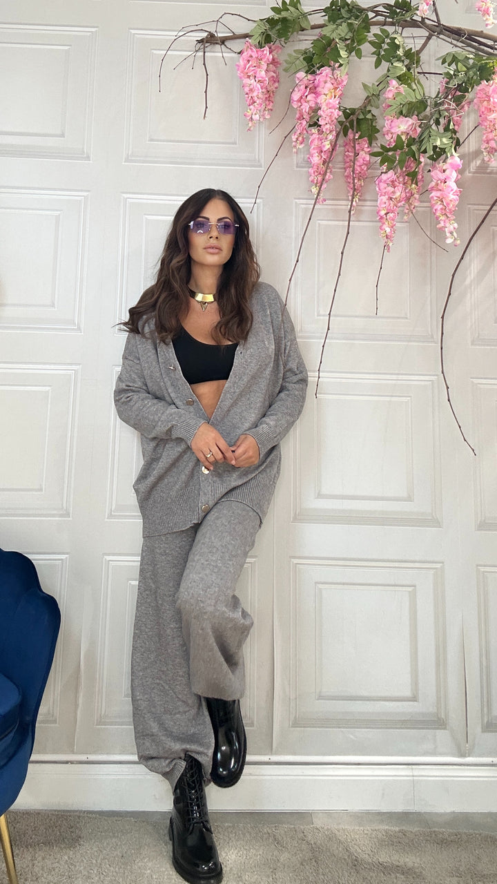 Coordinato in lana morbida composto da maxi cardigan dalla Vestibilita over e pantaloni vita alta con coulisse in vita, gamba larga e lunghi quindi adatti alle più alte. Tutto il coordinato è taglia unica e veste fino alla 48