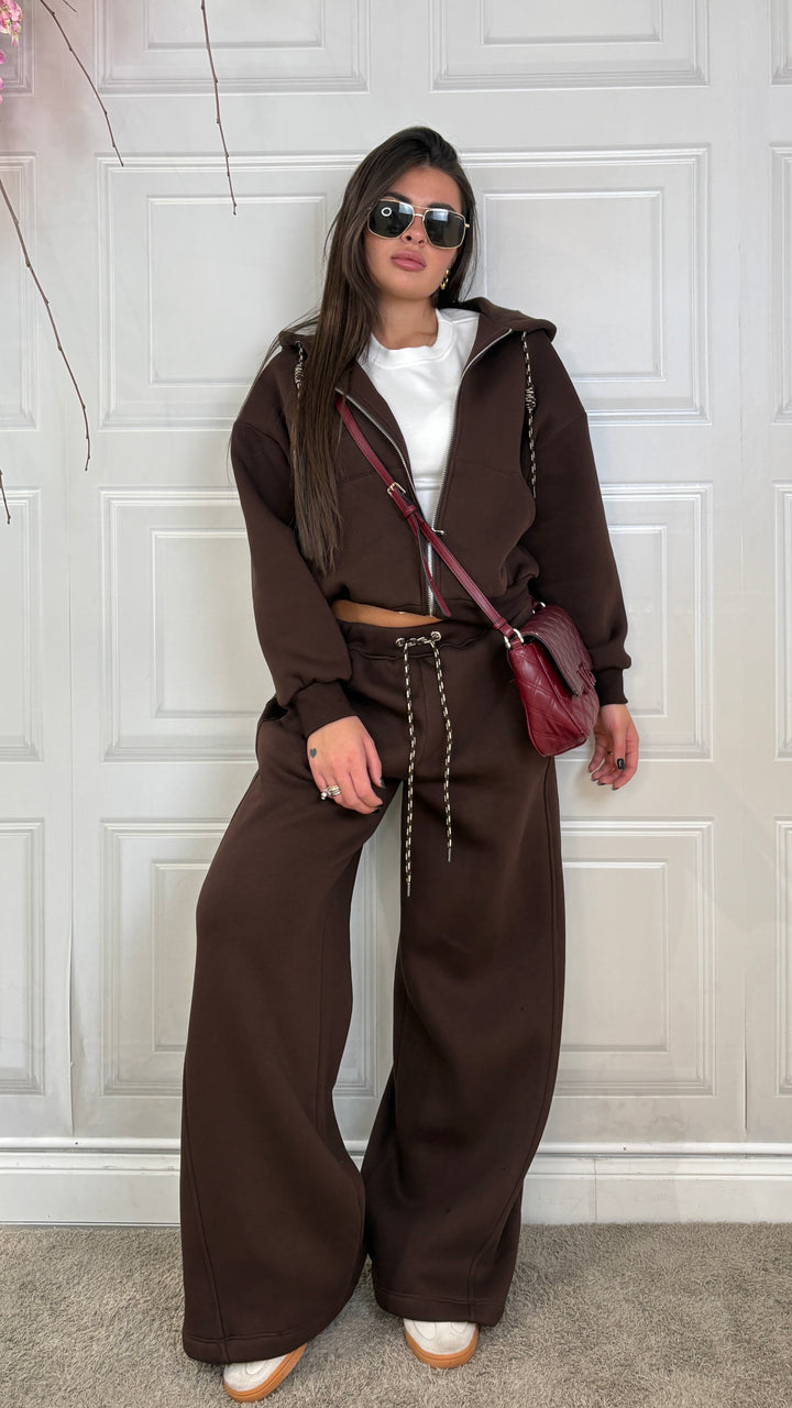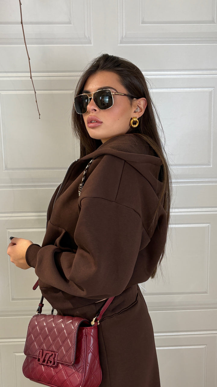 Coordinato Lumina super caldo composto da felpa con zip, cappuccio e tasche laterali. Pantaloni vita alta con molla elastica in vita e tasche laterali. Veste fino alla 48