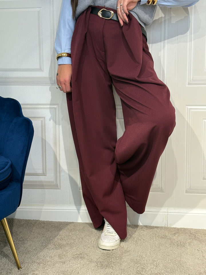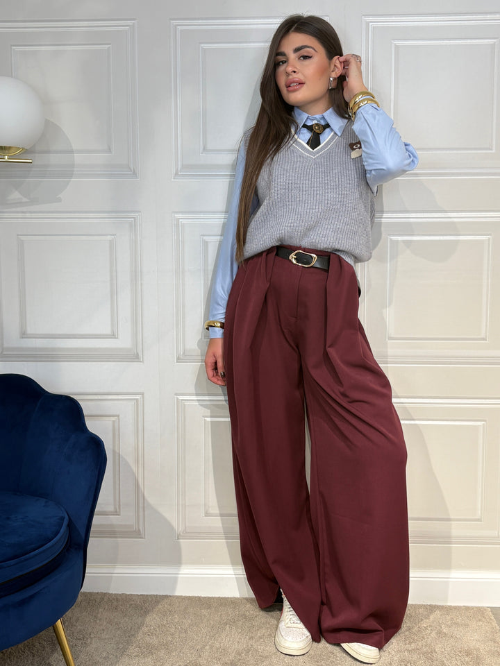 pantaloni vita alta larghi di gamba, con cerniera centrale. Adatti a una donna che ama essere casual e sofisticata in ogni occasione. Sono taglia unica e vestono fino alla taglia 46. Non portano tasche e hanno la cintura abbinata come accessorio.