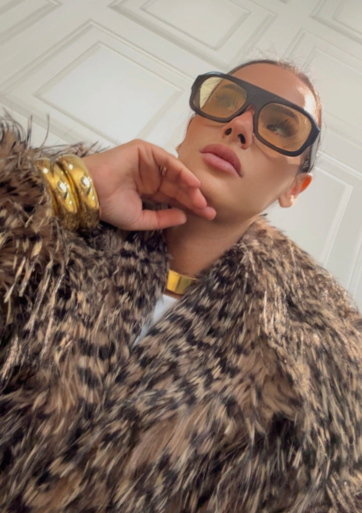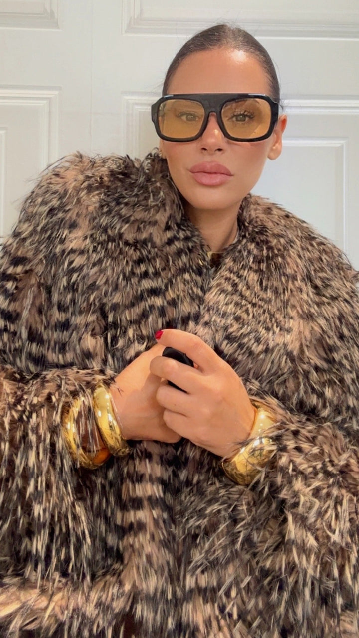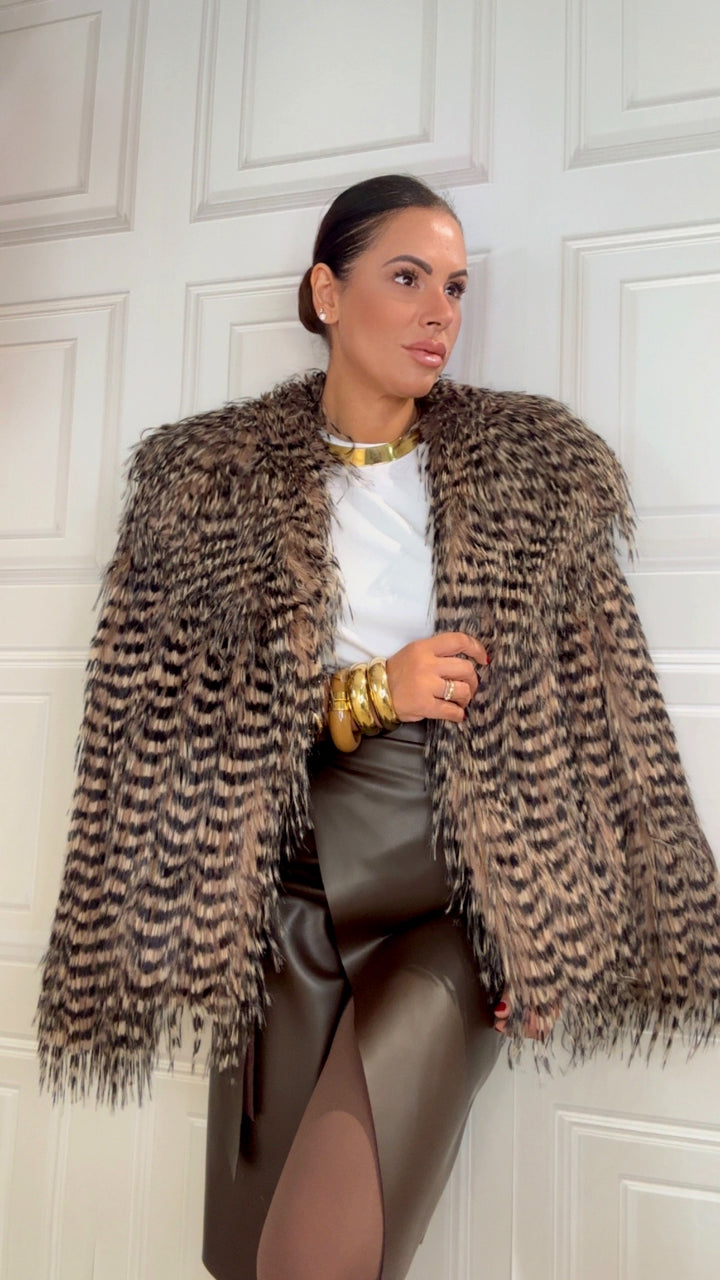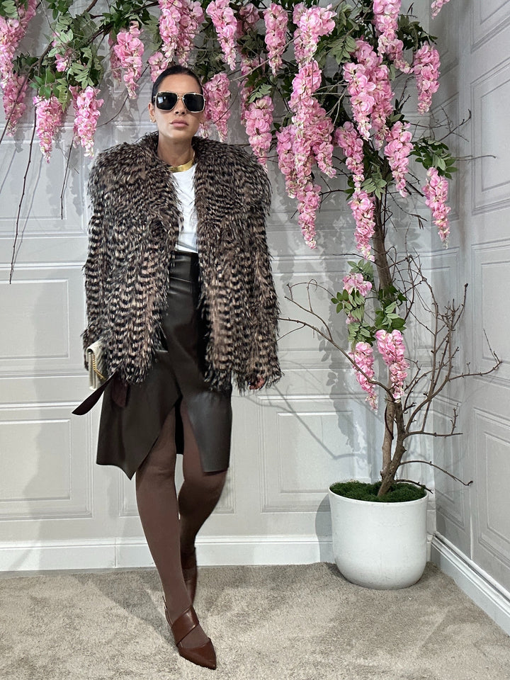 Pelliccia lunghezza regolare fantasia particolare colore beige e nero pelliccia nn troppo voluminosa semplicemente bellissima