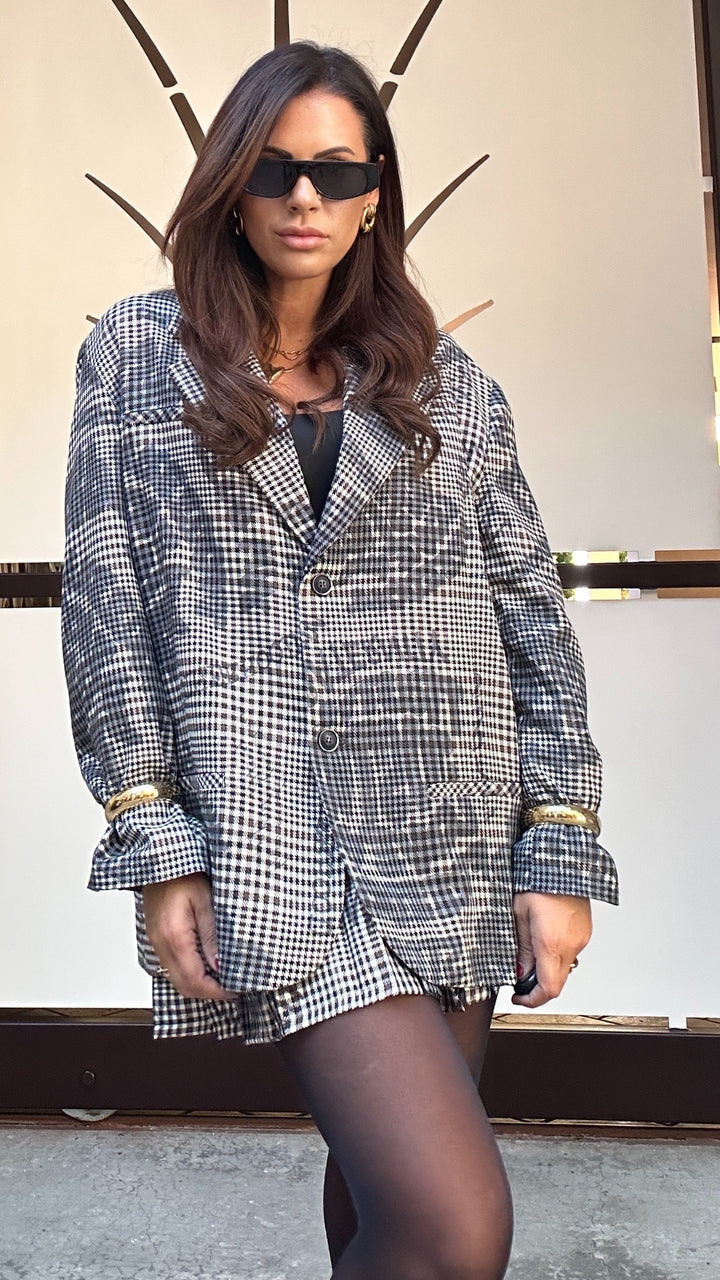 Giacca made in Italy modello over completamente foderata all'interno tasche finte sul davanti ,tre bottoni tono su tono come chiusura al centro