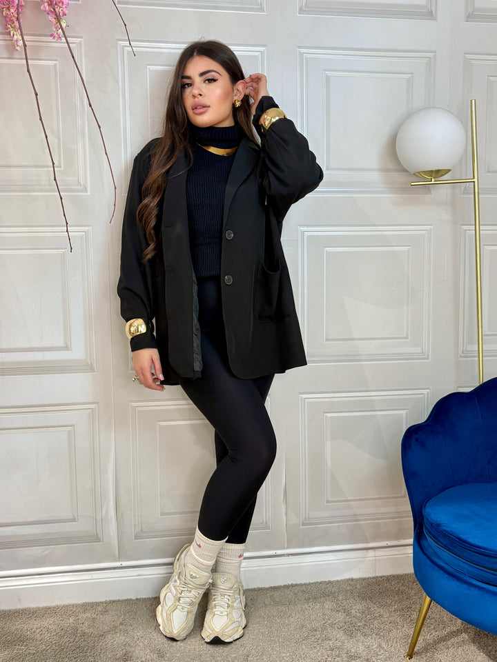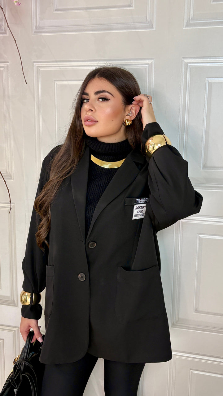 Giacca con interno foderato, spallina e doppio bottone sul davanti. Tasche sempre sul davanti. Vestibilita over