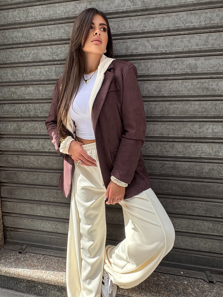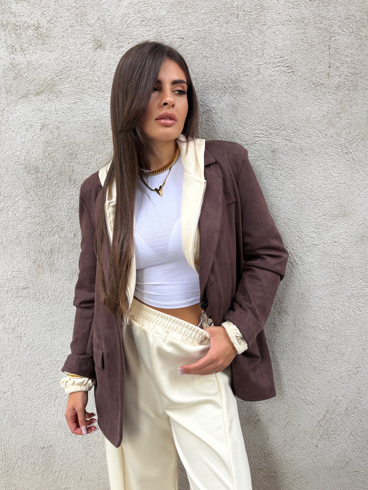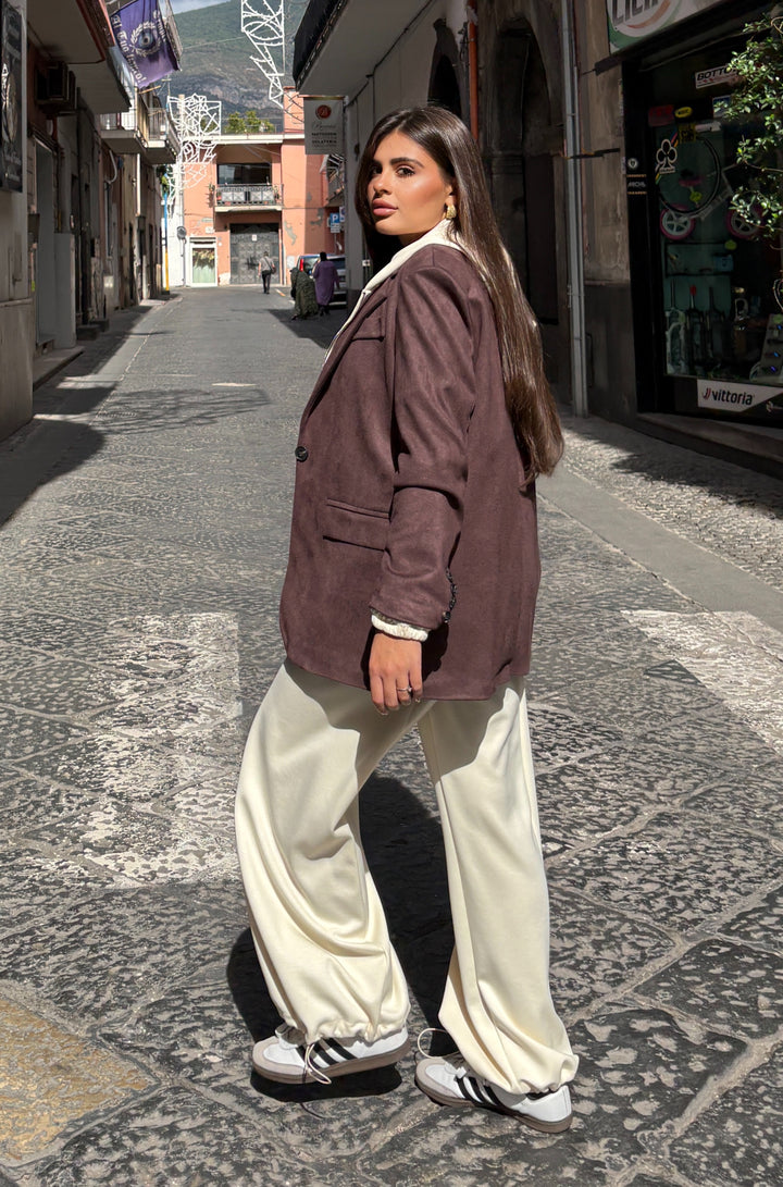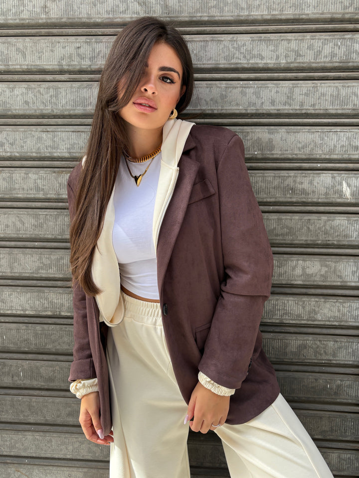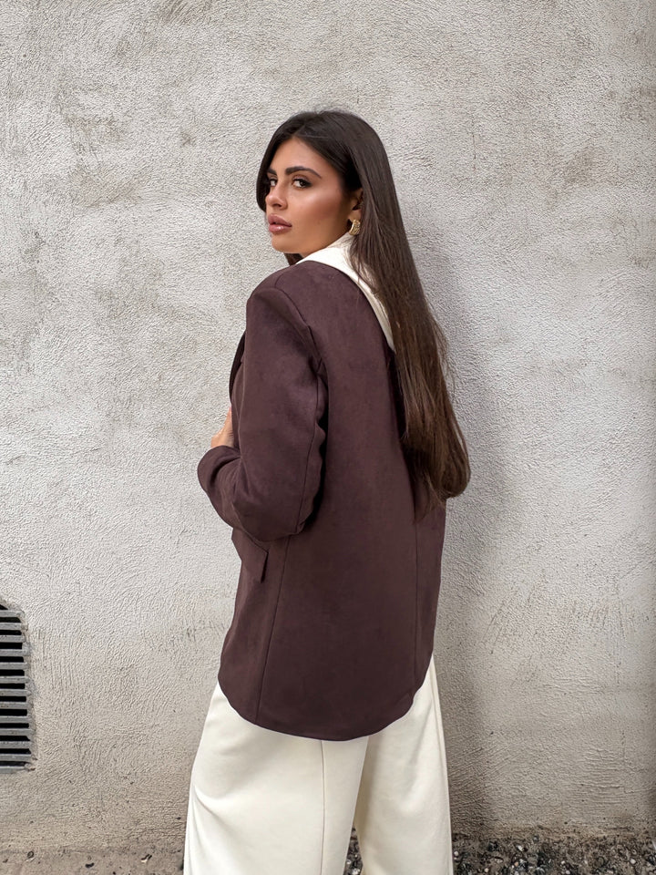 Giacca low cost in tessuto effetto renna. Bottone centrale, taglio classico. Veste fino alla 48