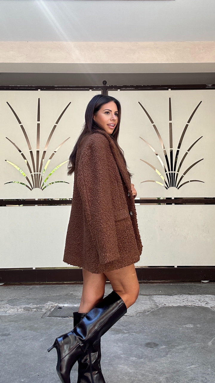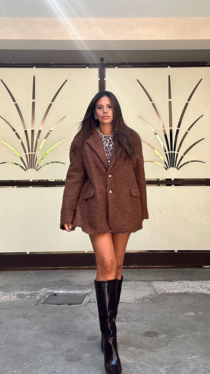 Giacca Made in Italy. Dalla Vestibilita over, bottone centrale e interno foderato.