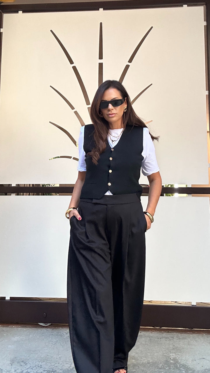 Gilet Mood panciotto, chiusura con 4 bottoni sul davanti,scollo a punta ,taglio vivo sulle cuciture ,e cuciture sul davanti che simulano le tasche il tessuto e viscosa, poliestere ed elastico