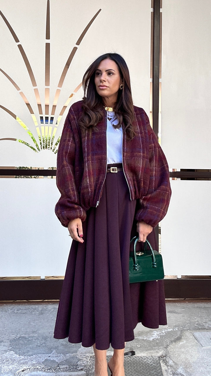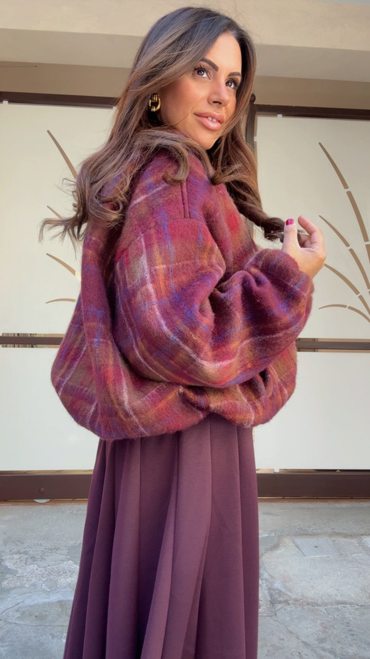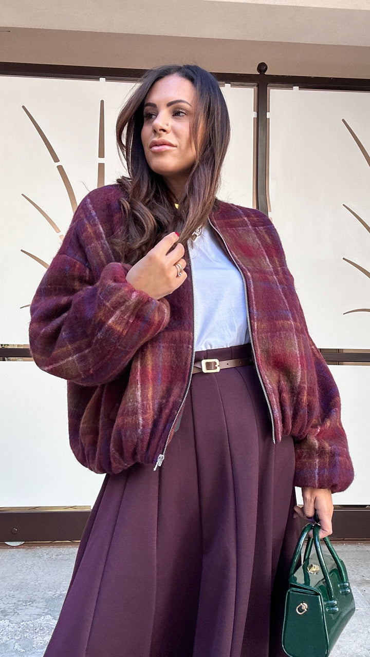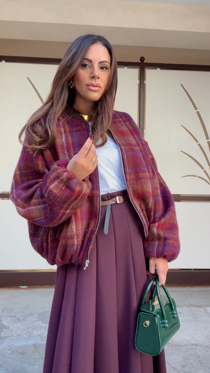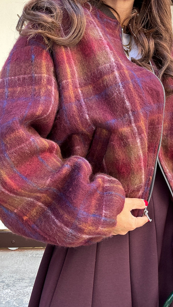 Giubbotto fantasia tartan in Lana. Ha questo effetto bomber grazie alla molla elastica che porta alla base. Ha là zip sul davanti veste bene fino alla taglia 46