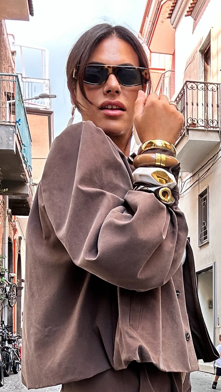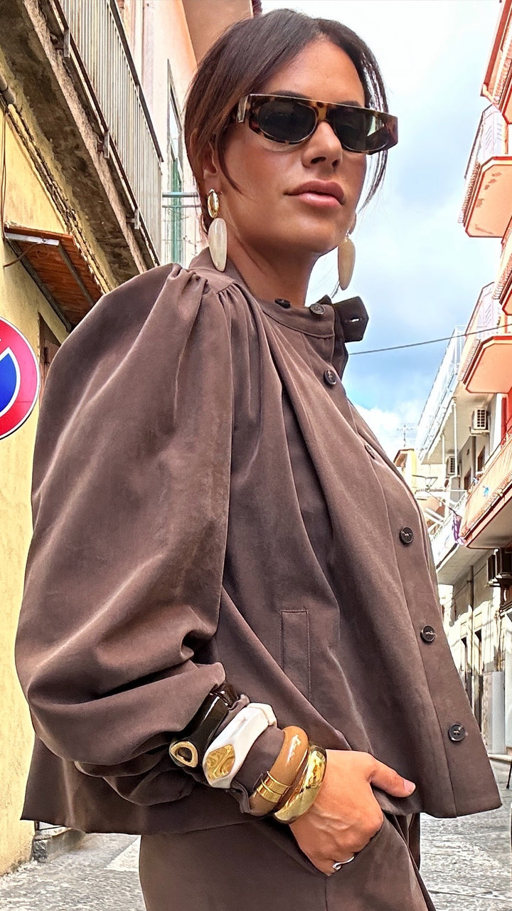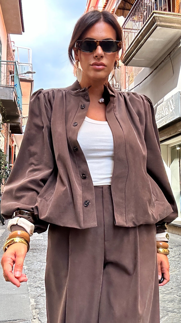 Giubbotto/giacca in tessuto Lyecell tessuto quasi del tutto naturale che ha la caratteristica oltre che a essere molto resistente è anche traspirante. Prodotto in Italia ha una Vestibilita quasi sartoriale e poi essere abbinato ai suoi pantaloni. Porta il collo alla coreana e i bottoni Sun davanti, scende a pieghe e rimane morbido