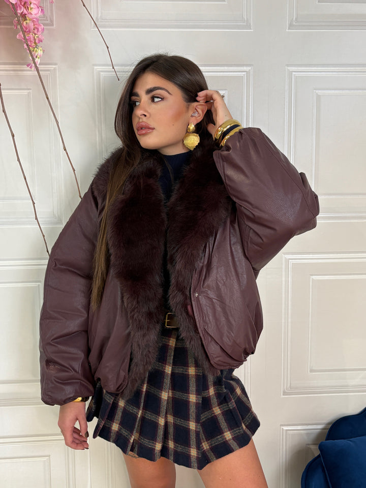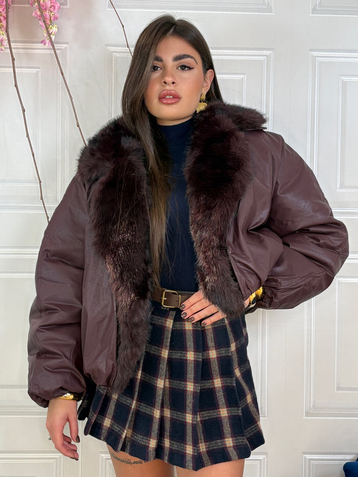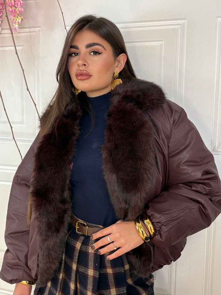 Piumino imbottito con collo in pelliccia removibile. Veste fino alla 48