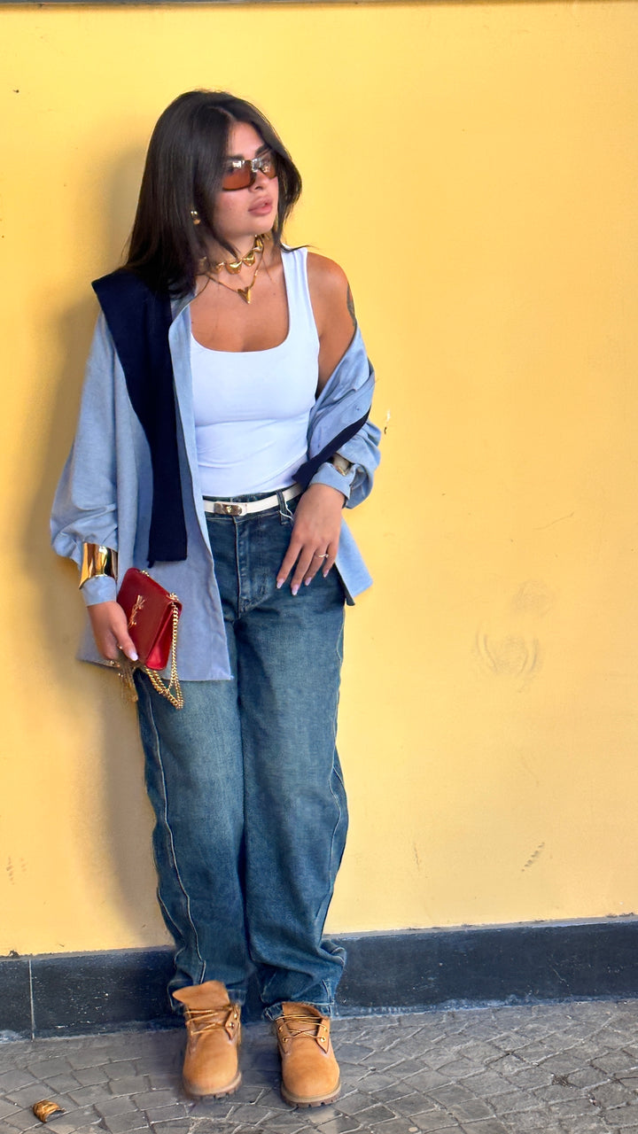 Jeans modello balloon in Denim fermo, lavaggio sfumatoLargo di gamba ha io punto vita che veste più piccolo. Quindi vi consiglio di acquistare la