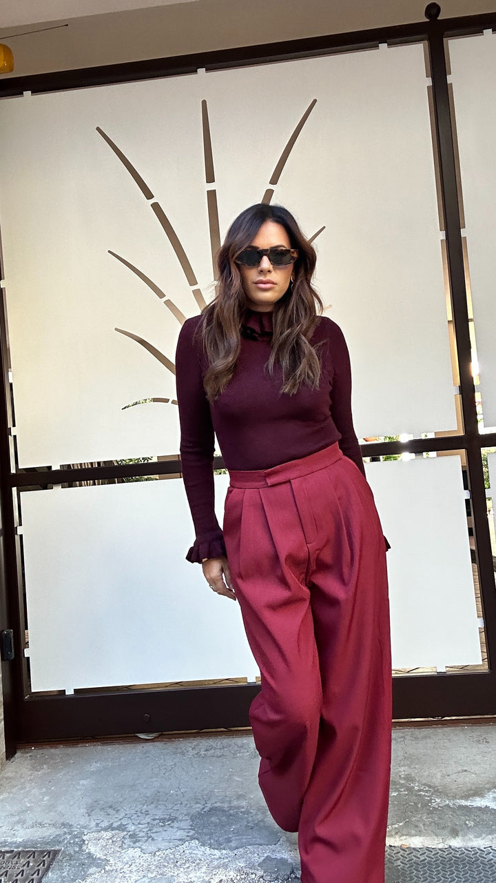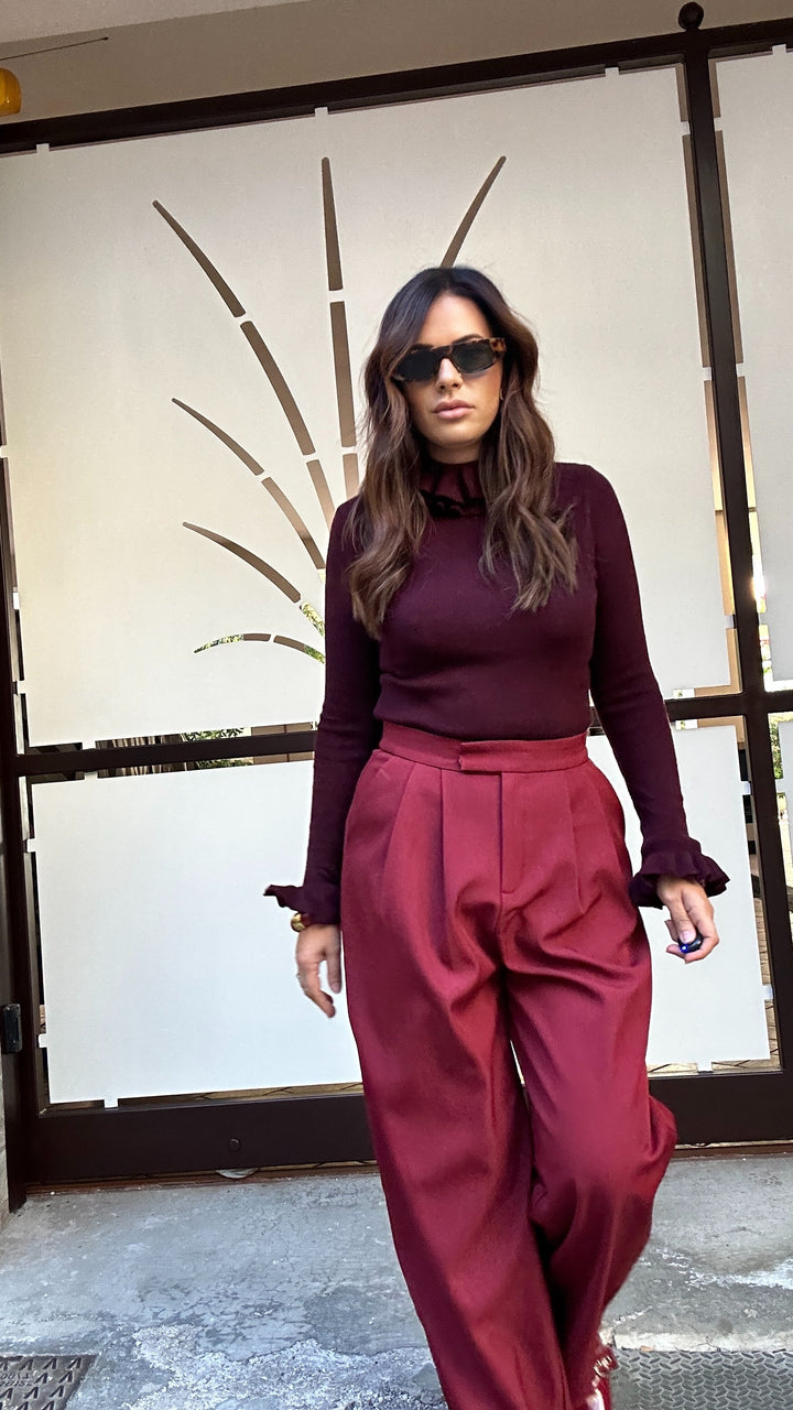 Dolce vita in lana rasata, morbidissima e di ottima qualità. Collo alto con rouge finale.