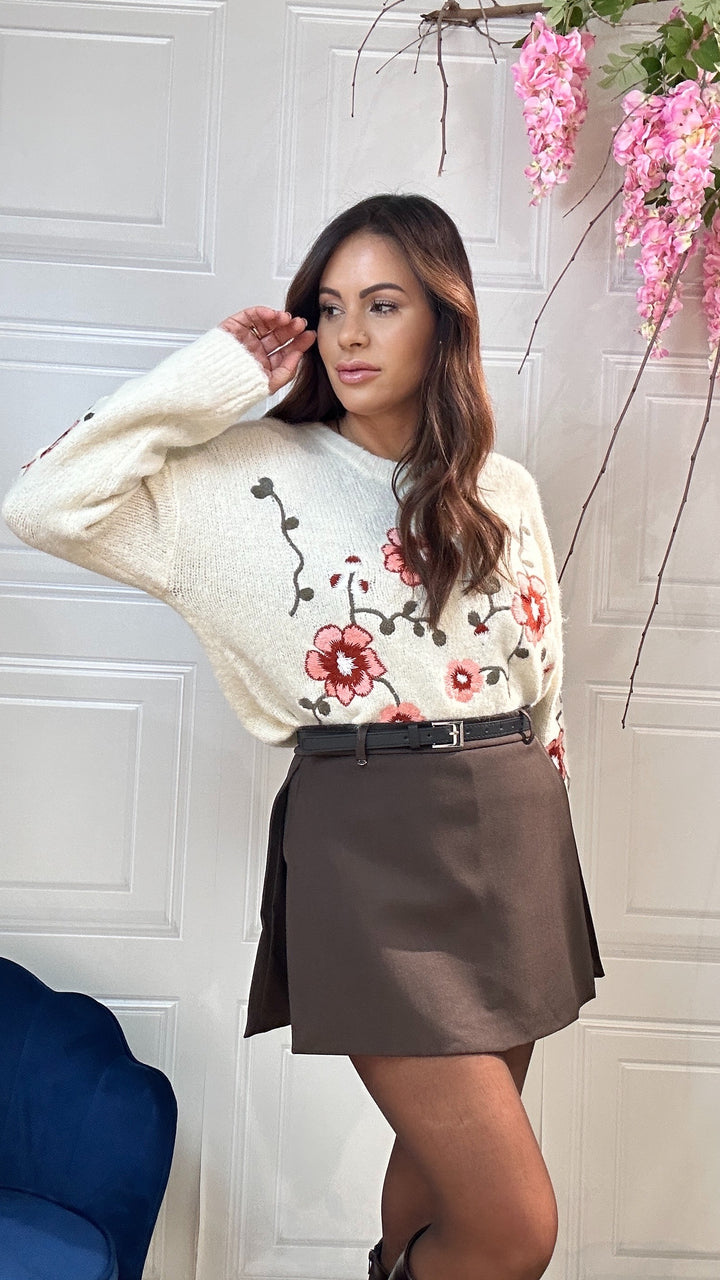 Maglioncino in lana con fiori ricamati sul davanti e sulle maniche. Taglia unica veste fino alla 46