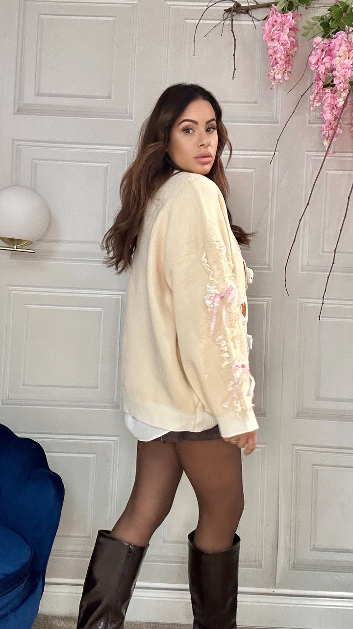 Maglione maxi in lana, troppo troppo bello perché porta tutti questi dettagli in merletto e lana. Veste fino alla taglia 48