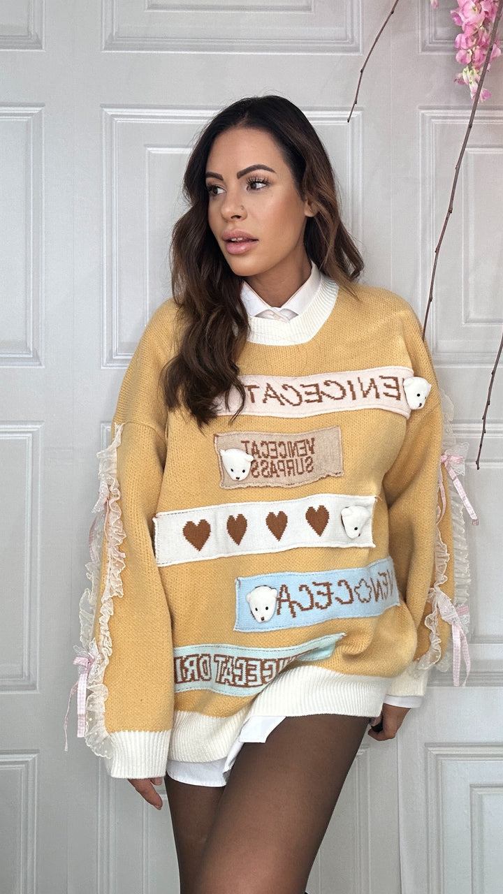 Maglione maxi in lana, troppo troppo bello perché porta tutti questi dettagli in merletto e lana. Veste fino alla taglia 48