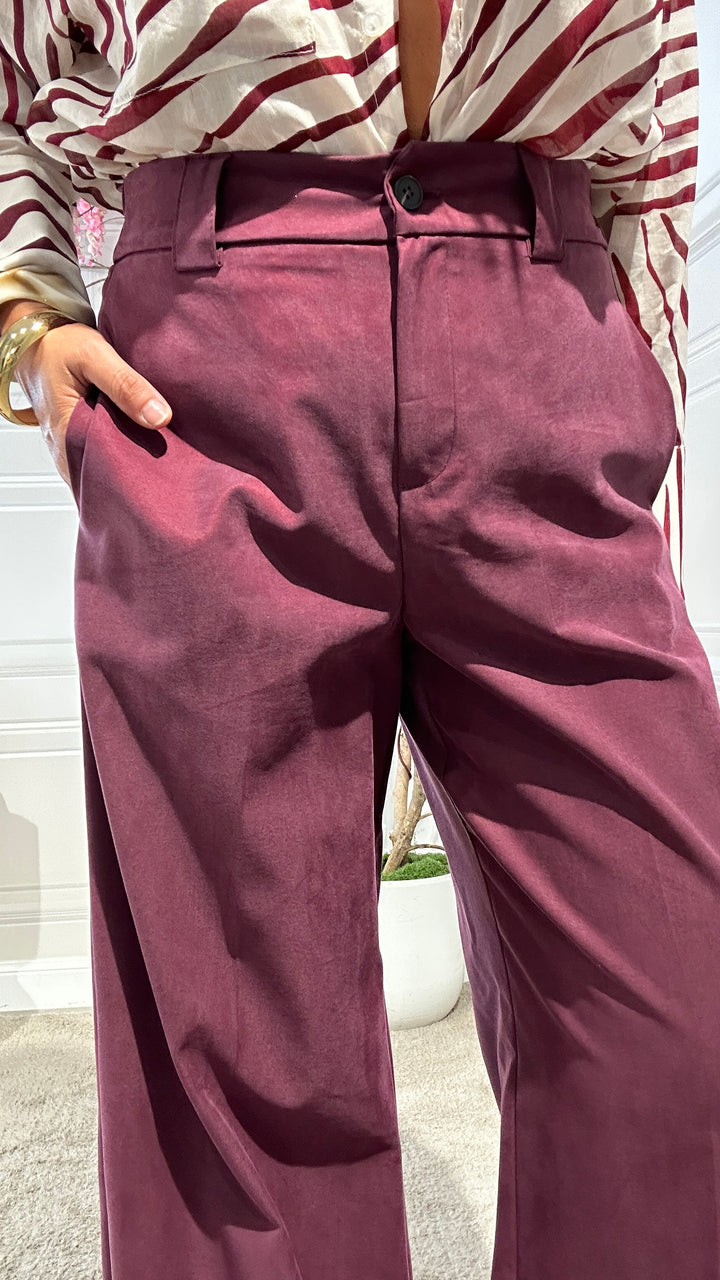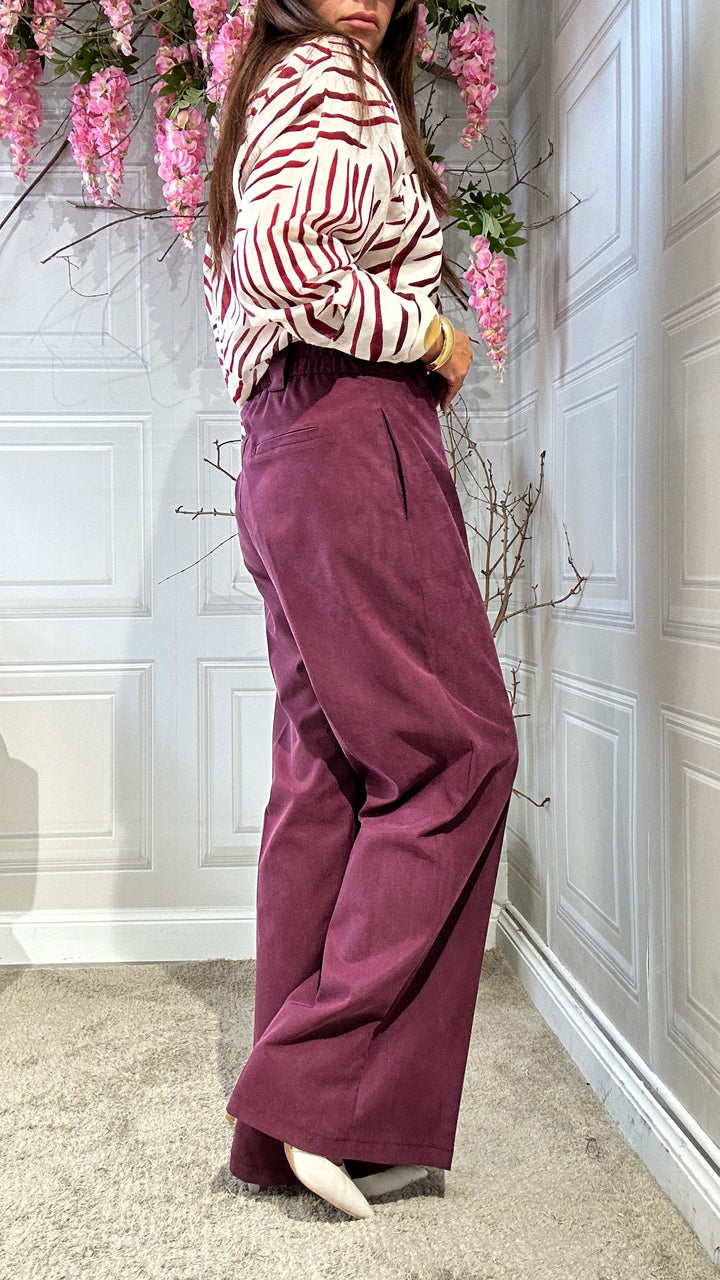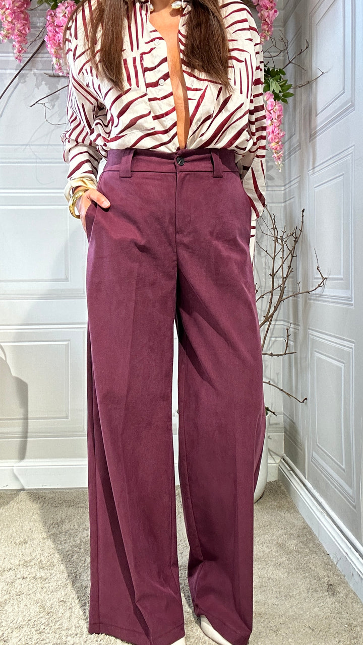 sono vita alta con zip centrale e bottone . Senza pence scende a gamba larga