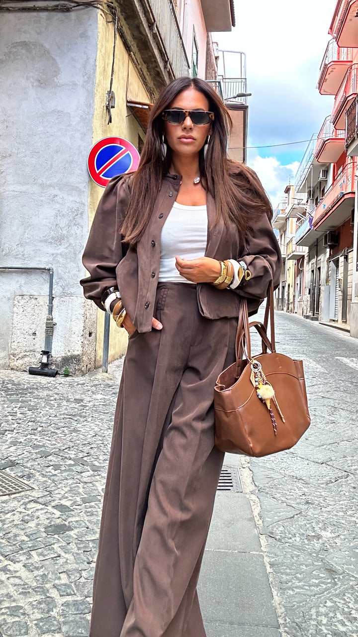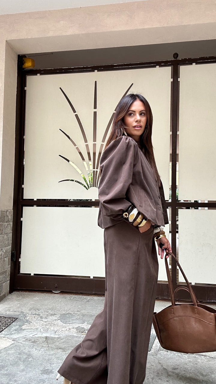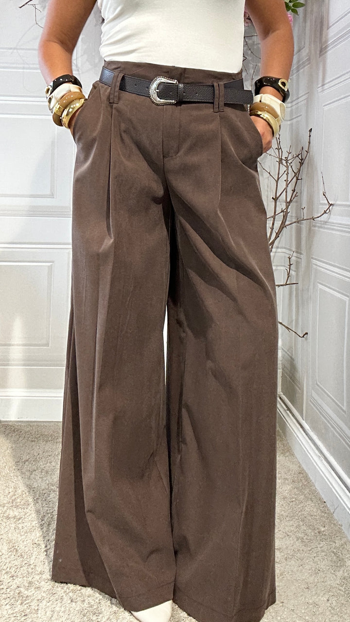 sono vita alta con zip centrale e gancetto invisibile. Porta una cintura che ovviamente è removibile. Ha le pence e scenda largo di gamba