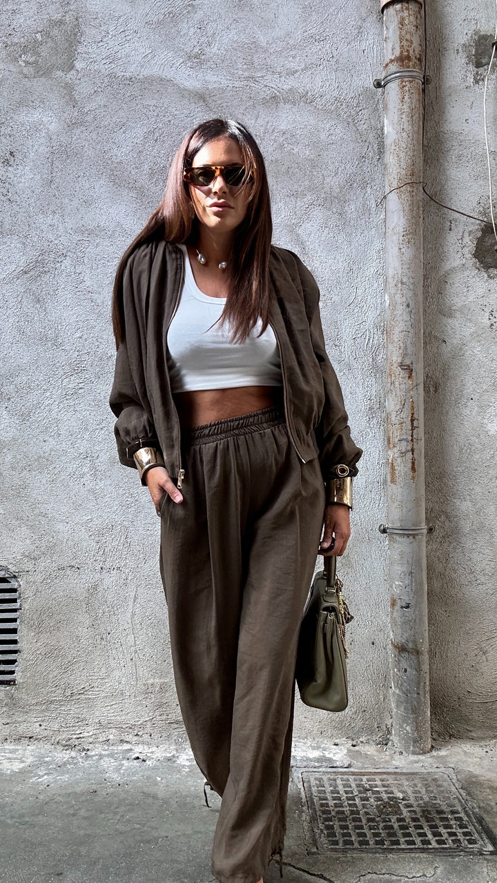 Pantaloni  in tessuto Lyecell tessuto quasi del tutto naturale che ha la caratteristica oltre che a essere molto resistente è anche traspirante. Prodotto in Italia ha una Vestibilita quasi sartoriale e poi essere abbinato al suo giubbotto/giacca.