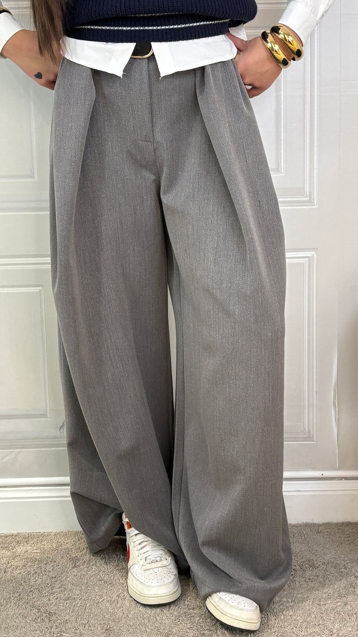pantaloni vita alta larghi di gamba, con cerniera centrale. Adatti a una donna che ama essere casual e sofisticata in ogni occasione. Sono taglia unica e vestono fino alla taglia 46. Non portano tasche e hanno la cintura abbinata come accessorio.