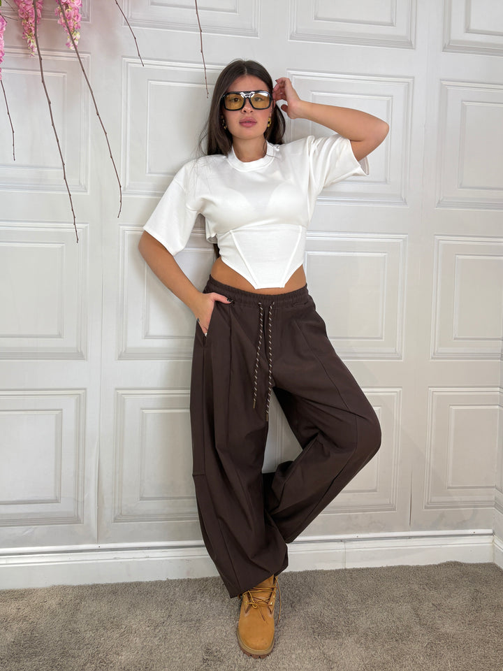 Pantaloni cargo con molla elastica in vita e la coulisse che vi permette di stringere il punto vita. Veste fino alla 46