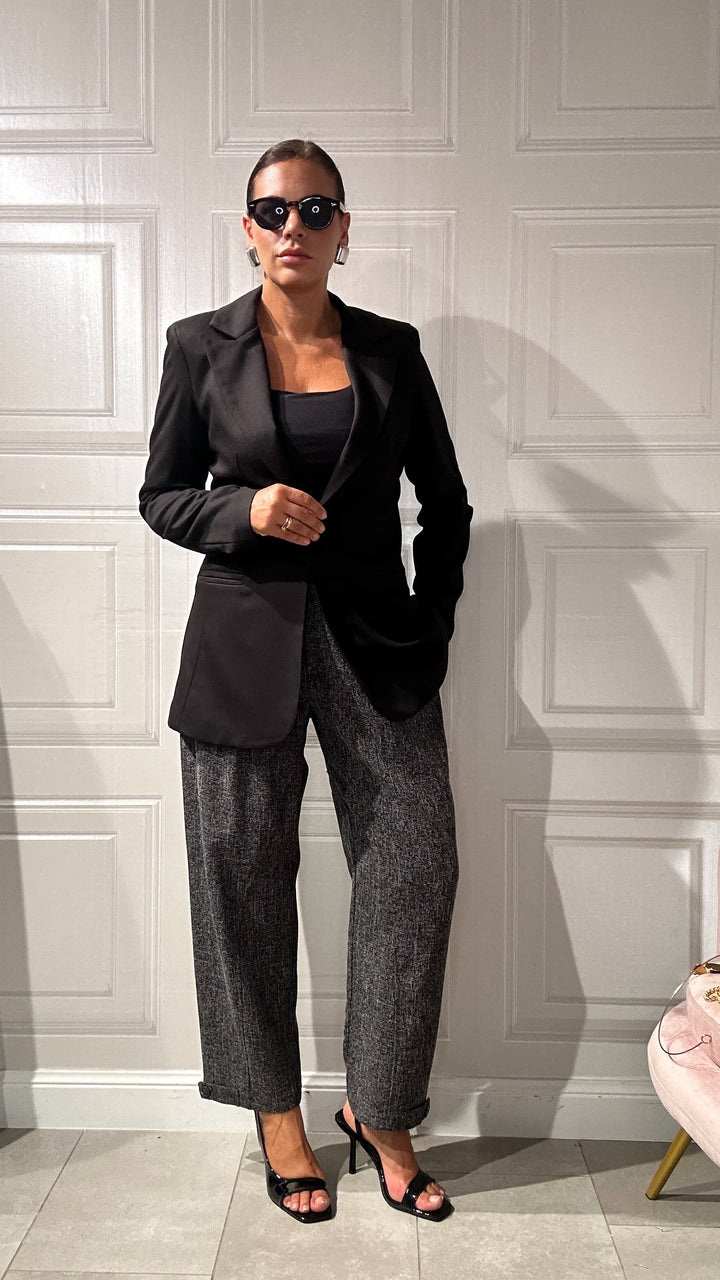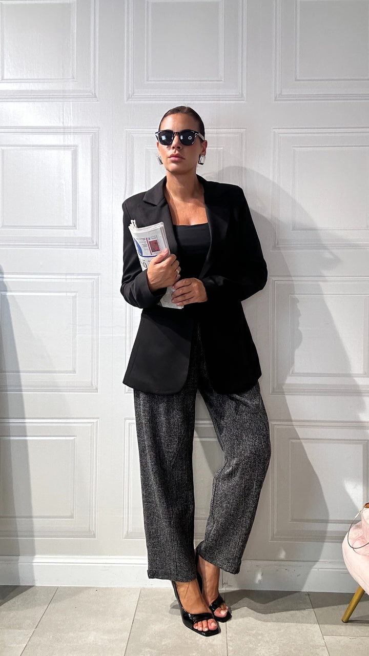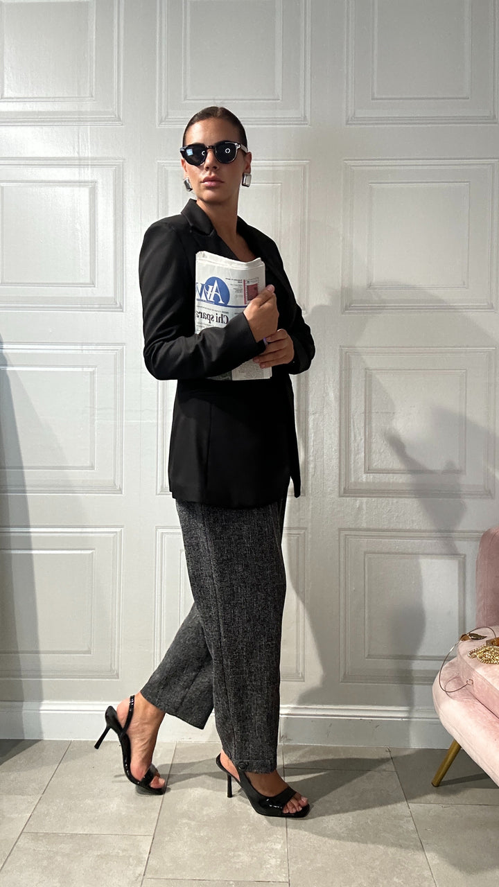 pantaloni vita alta con bottone e zip centrale e tasche laterali. Lunghezza alla caviglia ha una Vestibilita comoda, elegante e casual al tempo stesso.