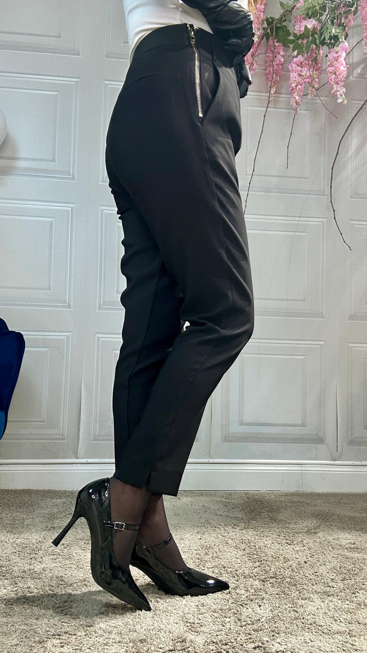 Pantaloni a sigaretta modello Zara vita alta con zip laterali e molla elastica sul retro. La molla elastica li rende ancora più comodo. La Vestibilita è regolare