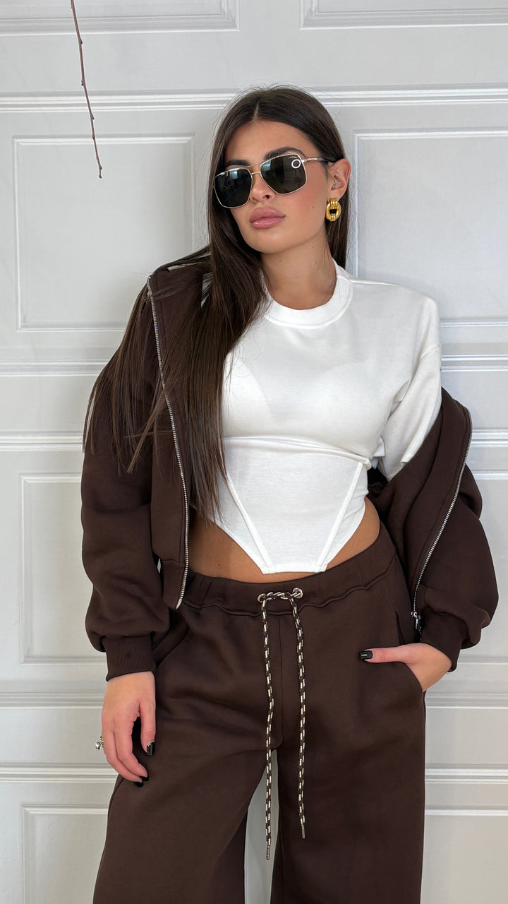 Maglia crop con spallina interna e si regola sul retro con una coulisse. Veste fino alla taglia 44