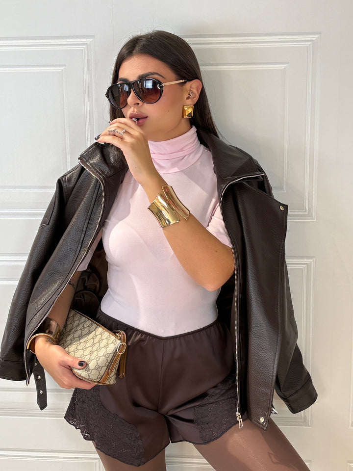 Short effetto raso tg unica con elastico sottile in vita ,la composizione del tessuto e poliestere,rayon,spandex, sulle gambe porta un ricamo traforato colore si colore