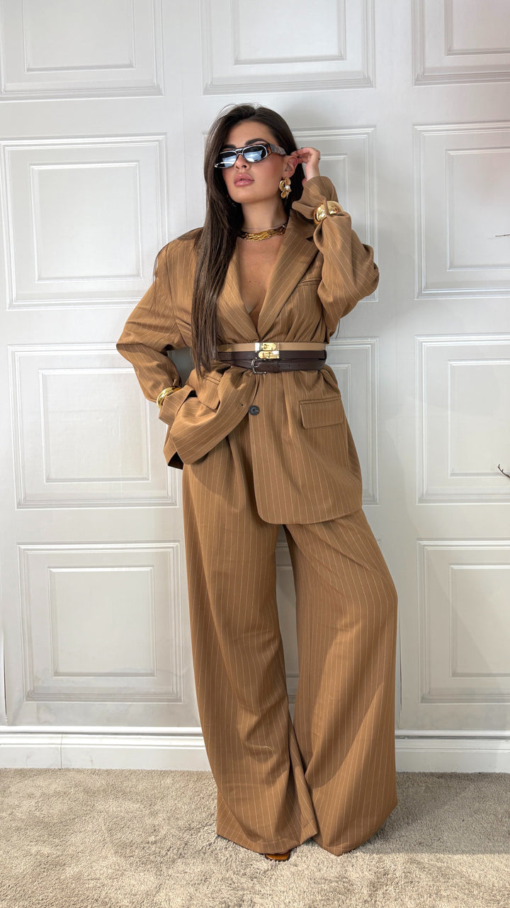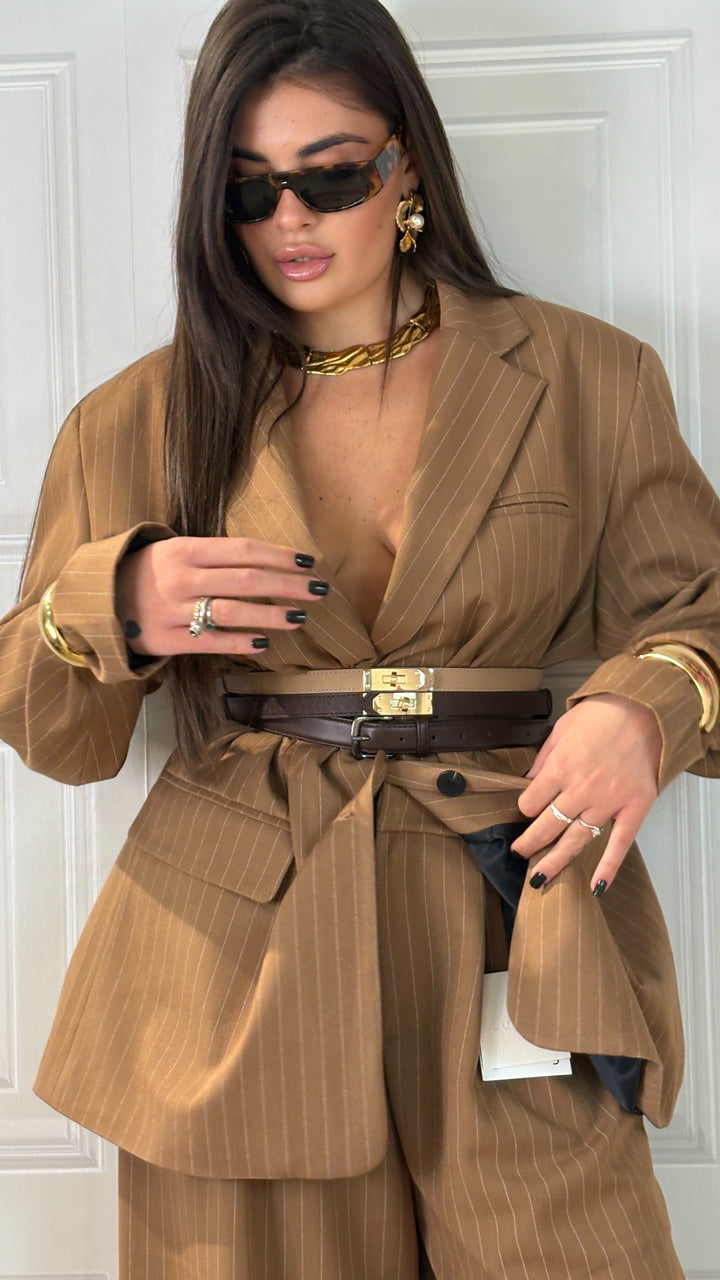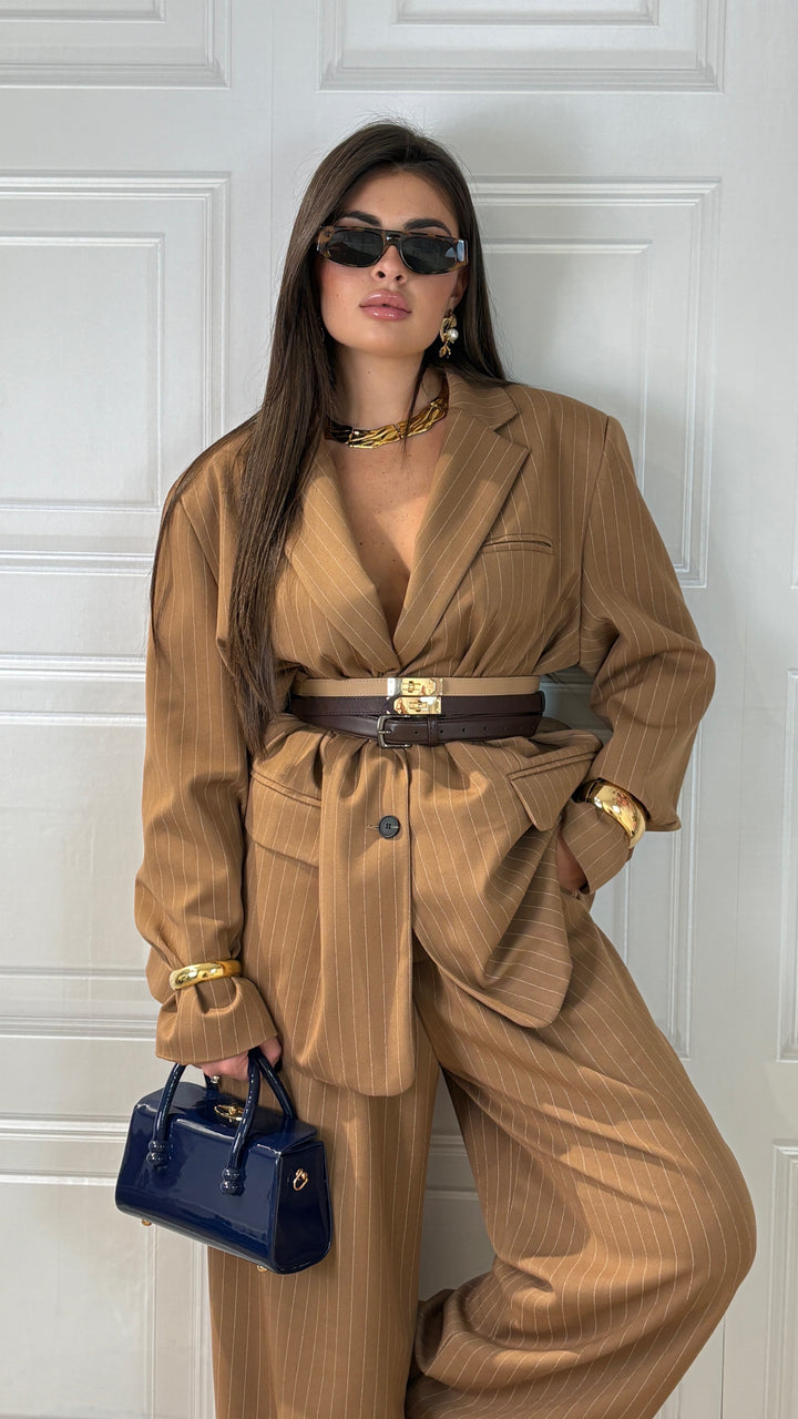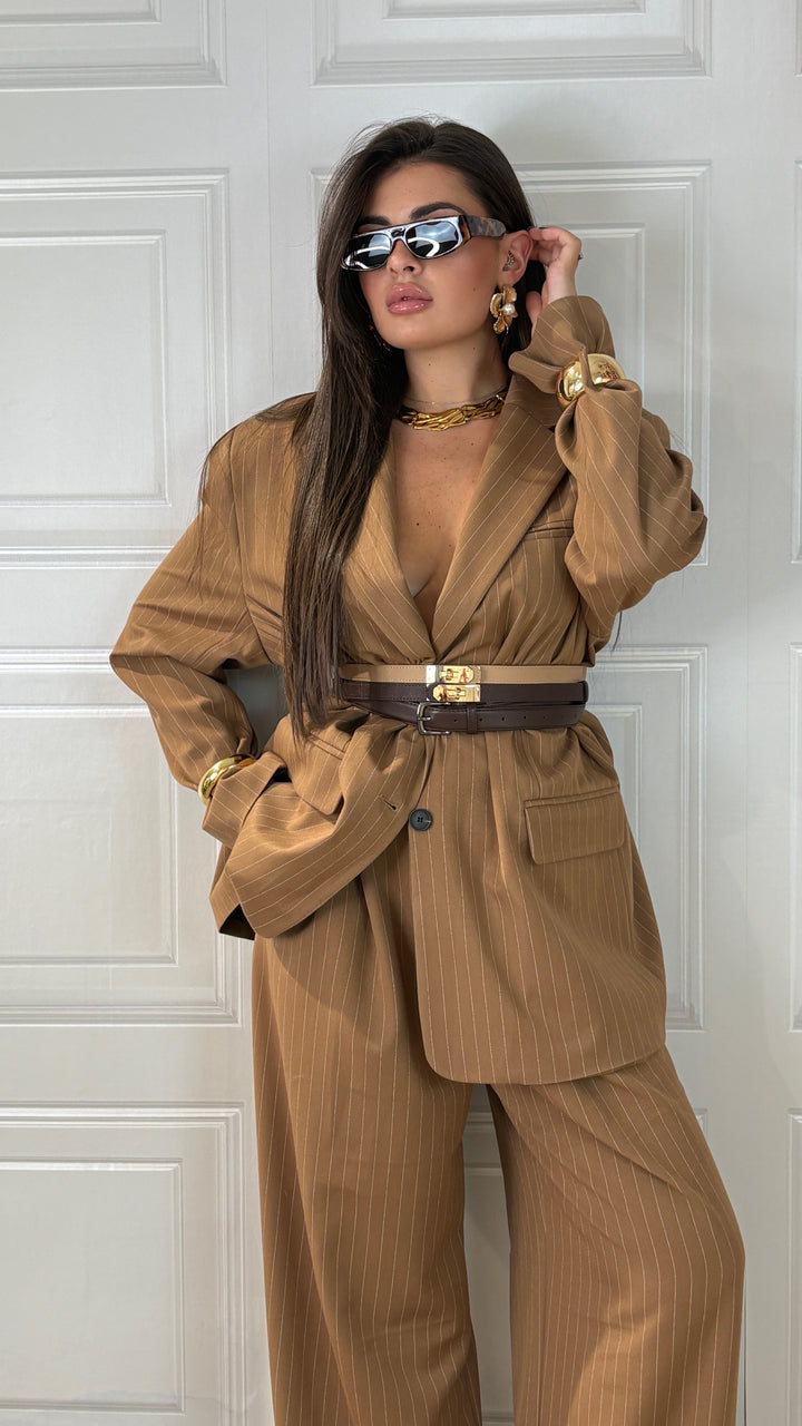 È uno spettacolo questo tailleur di Lumina.un capo davvero versatile. Adatto sia di giorno che di per un evento serale. La giacca è over con la spallina interna e doppio bottone sul davanti. Porta anche una cintura in simil