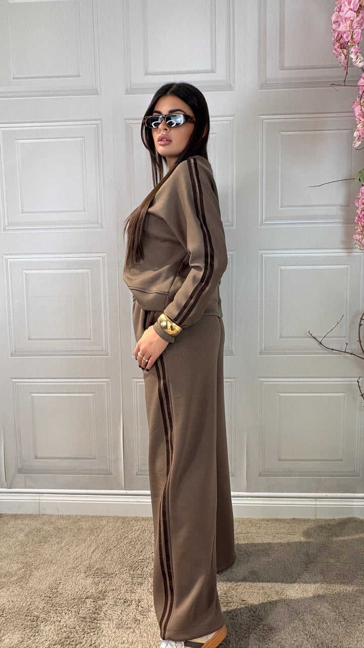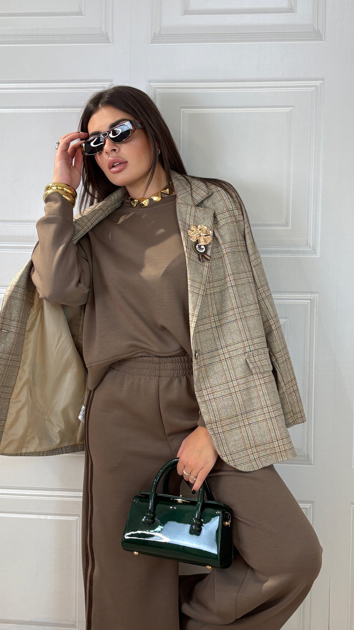Coordinato formato da della e pantalone nn felpato e in viscosa ed elastico la felpa e lunghezza regolare sui fianchi nn slim giro collo ,il pantalone porta l'elastico in vita e scende a palazzo sulle gambe e tg unica ma veste comoda