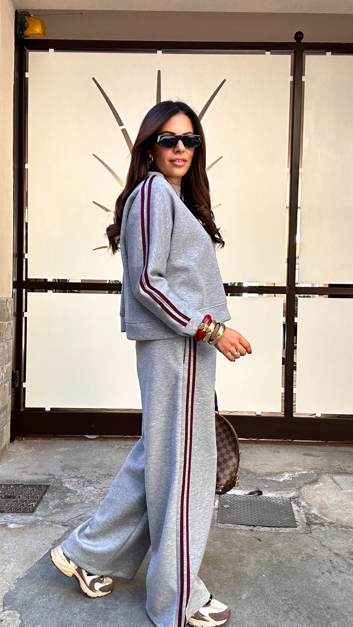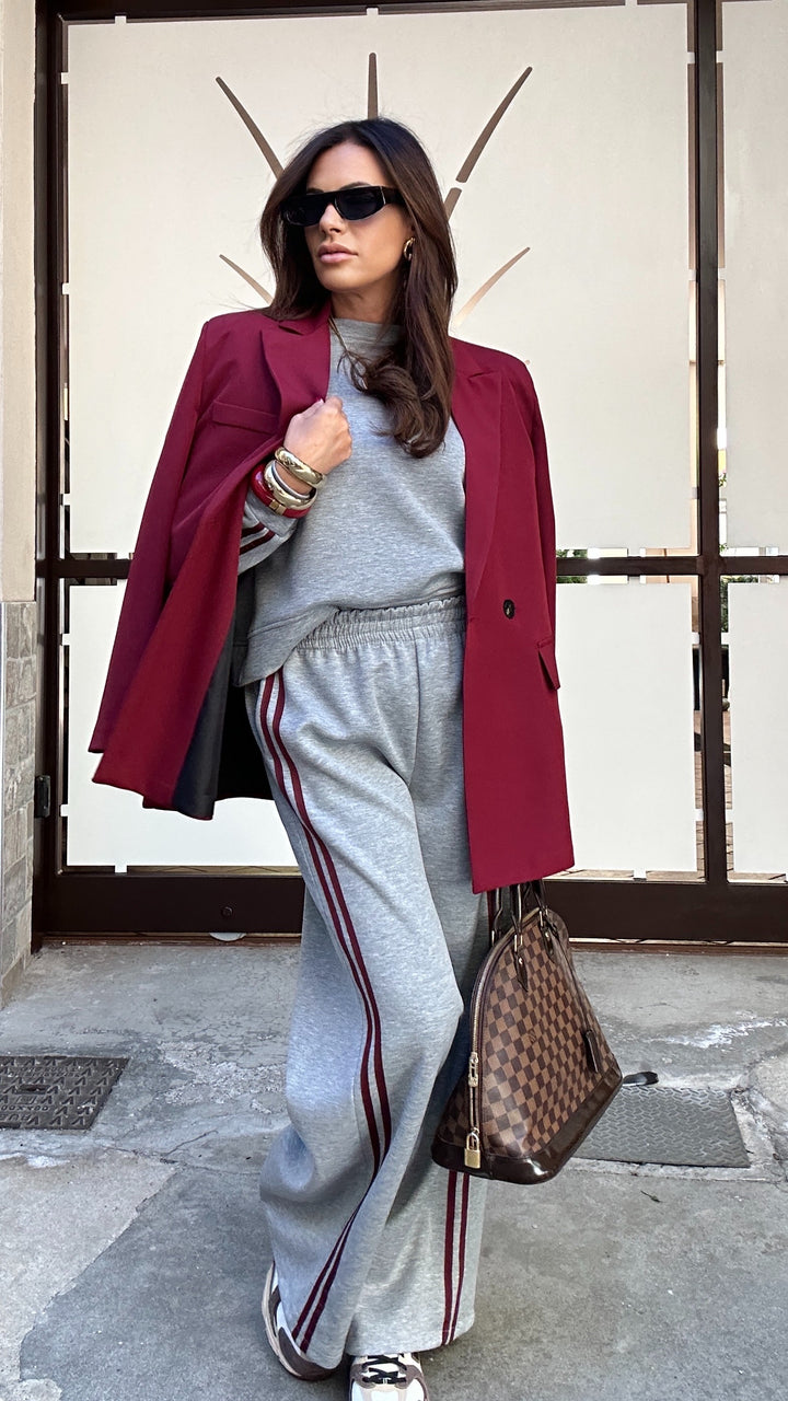 Coordinato formato da della e pantalone nn felpato e in viscosa ed elastico la felpa e lunghezza regolare sui fianchi nn slim giro collo ,il pantalone porta l'elastico in vita e scende a palazzo sulle gambe e tg unica ma veste comoda