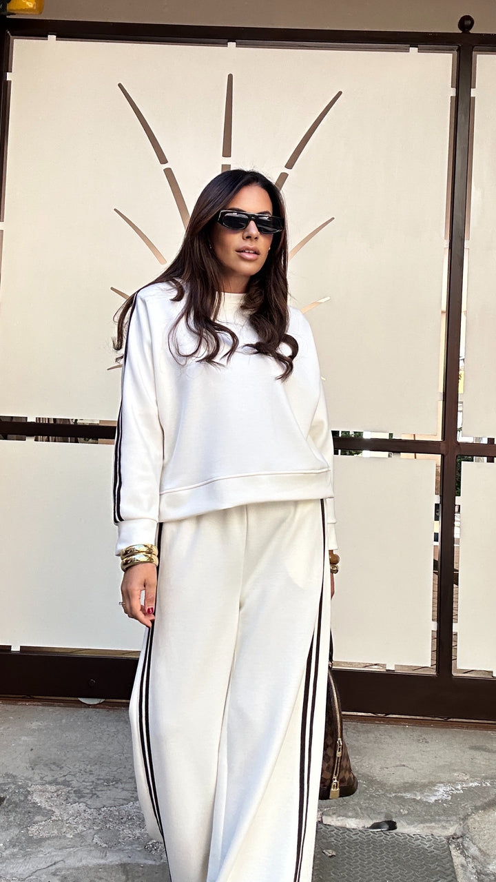 Coordinato formato da della e pantalone nn felpato e in viscosa ed elastico la felpa e lunghezza regolare sui fianchi nn slim giro collo ,il pantalone porta l'elastico in vita e scende a palazzo sulle gambe e tg unica ma veste comoda